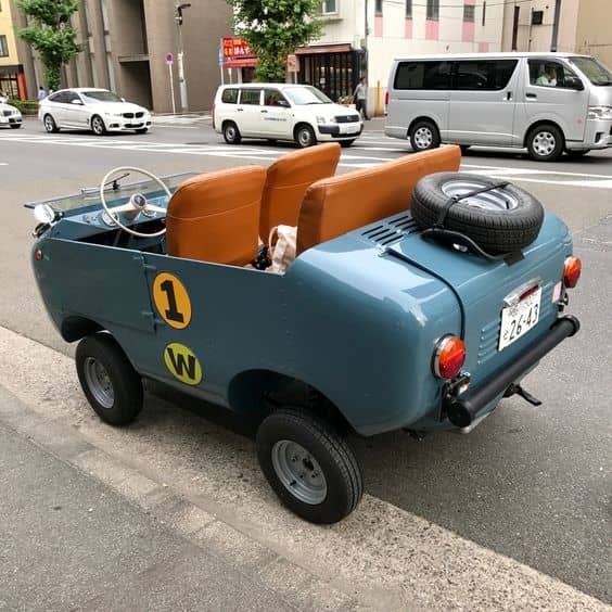 Japanese auto enthusiast Takamasa Segi bought a Ferves Ranger and converted it into this. Ferves was an Italian car manufacturer that made these tiny automoblies as an off-road alternative to the Fiats.