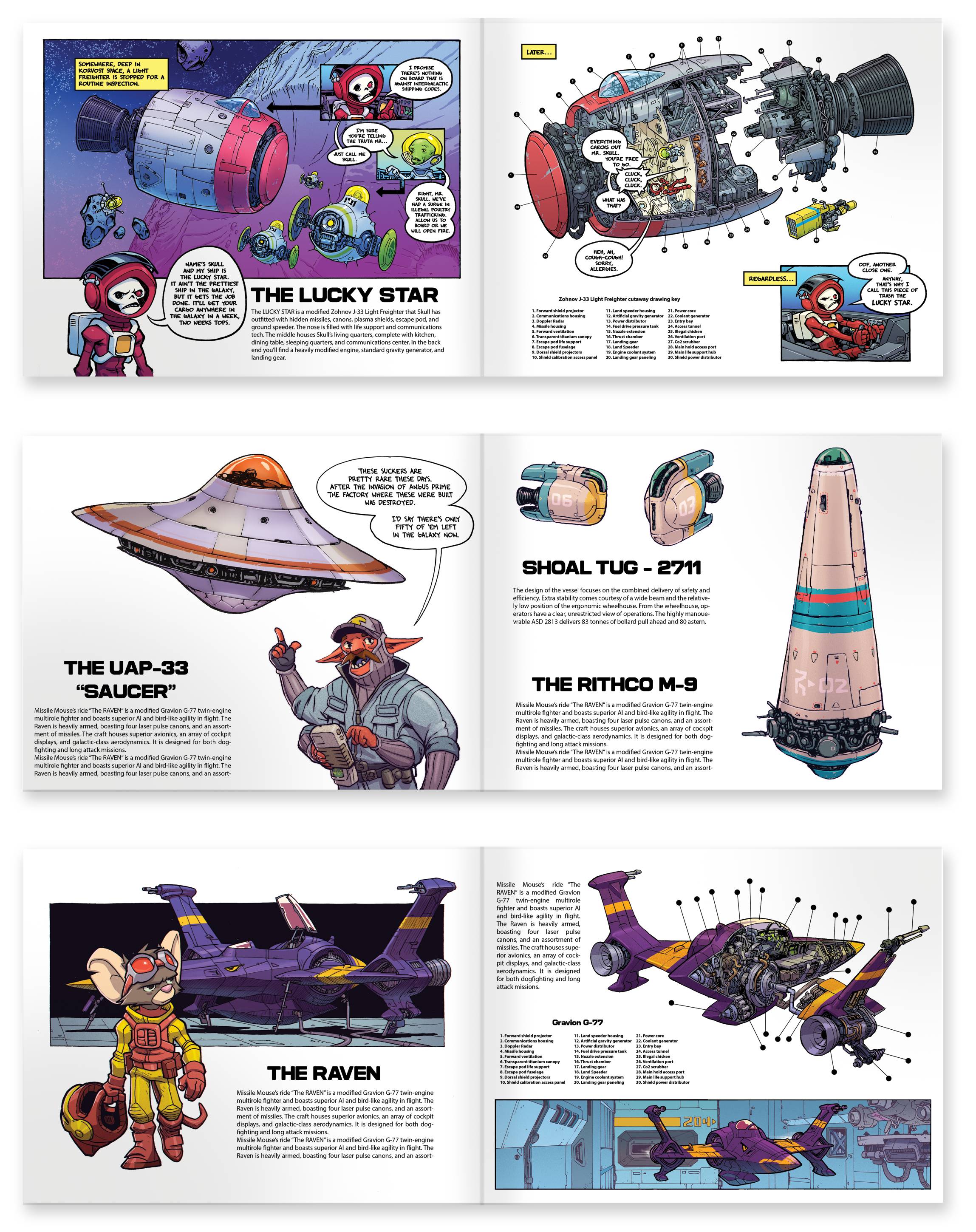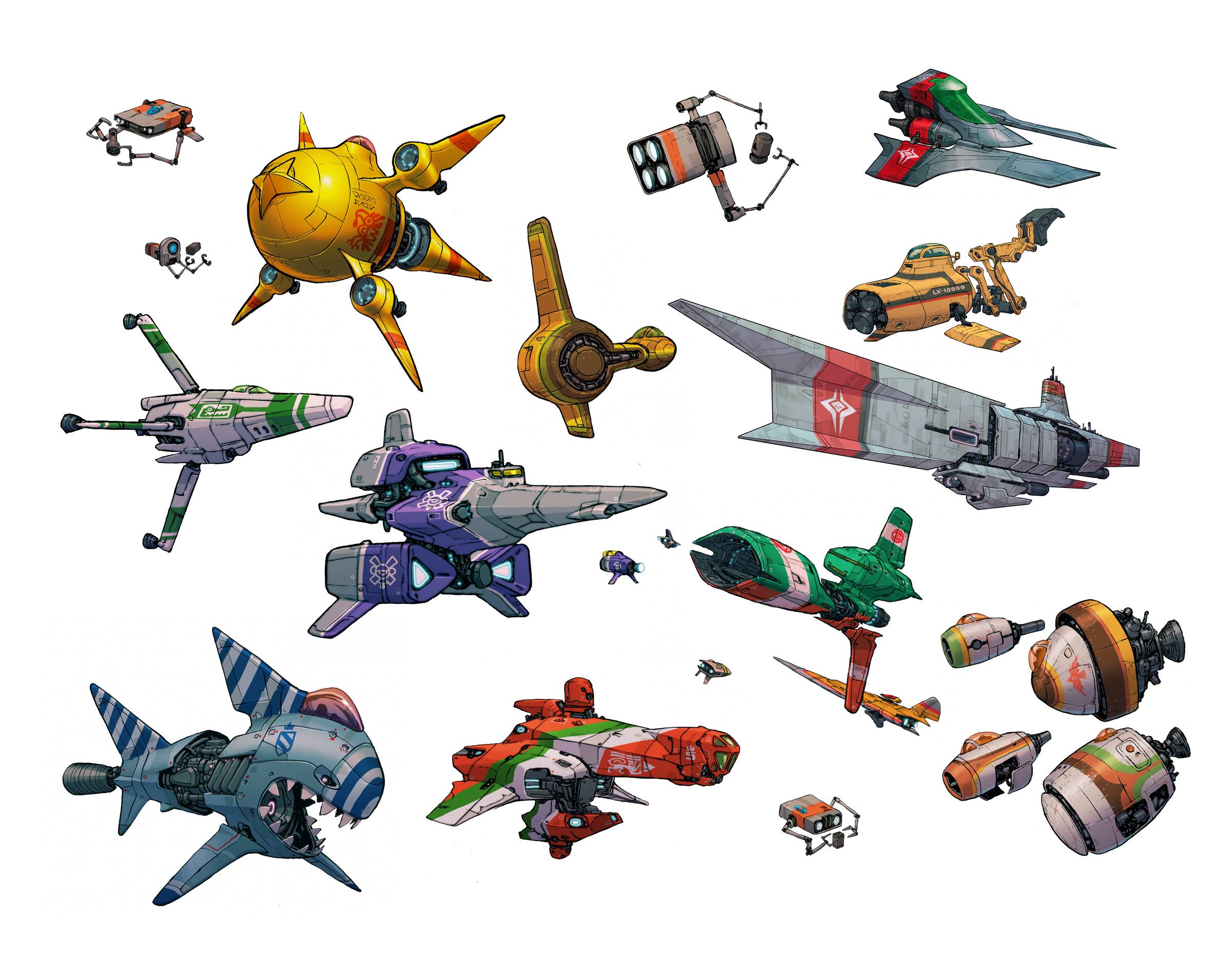 Here's a bunch more spaceships I've been cleaning up and coloring for the book. A rough layout is finished for the book so now I'm going in and polishing each spread.